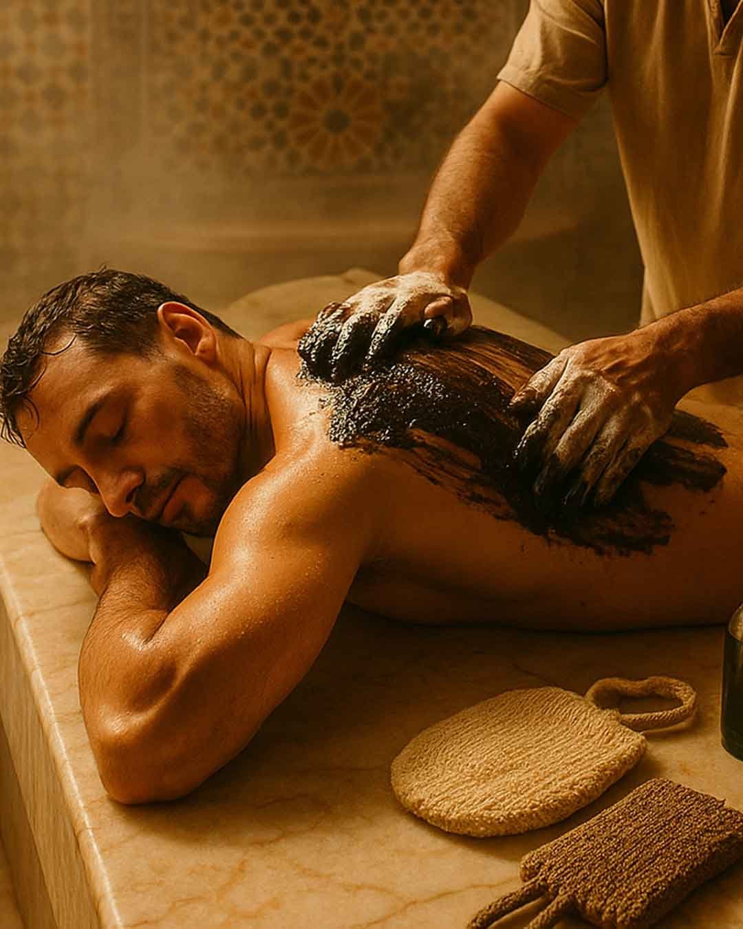 حمام مغربي بالبخار لتنظيف وتلييف الجسم وازالة طبقاتالجلد المتراكمة